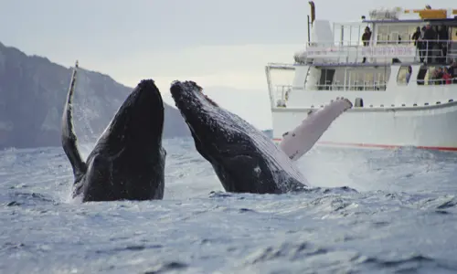 - From May to November each year, migrating humpback whales can be spotted along the coast and occasionally in Sydney Harbour itself – get a close-up look with local experts Whale Watching Sydney. Whales can also be spotted north of Sydney in Port Stephens, where Moonshadow TQC runs seasonal whale watching cruises in the sheltered waters of Nelson Bay, as well as dolphin spotting cruises all year round.